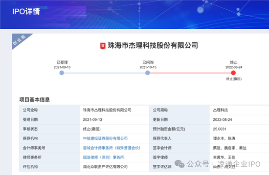 2 、2021年9月13日公司第三次申报IPO(创业板),目标融资 25亿,可能是因为被证监会稽查过,深交所对公司进行了三轮问询并进行了现场督导,《深交所创业板注册制发行上市审核动态》(2022年第8期)对公司是这样描述的:在现场督导中有发行人前次申报被开展现场检查,发现通过使用员工个人银行账户大额收取、支付货款,本次申报发现仍存在前述情形,但未能就资金往来情况提供充分证据和合理解释。不过,杰理科技在新三板问询回复称第三次IPO失利的原因为收到深交所督导通知、在审期间消费电子行业下行。