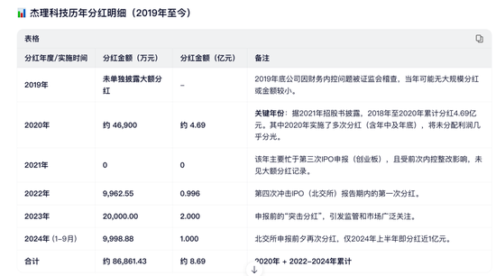 3 、有意思的一个事情是,2024年3月25日,公司前财务总监兼董秘李翰韬起诉杰理科技要求支付分红,而杰理科技对此解释称,其之所以一直未将相关分红款付予李翰韬,是因为“自2022 年 11 月至今,公司就股东大会、分红款项发放、申请挂牌等事项通过多种渠道尝试联系李翰韬,但未能取得有效联系”。你们信不?